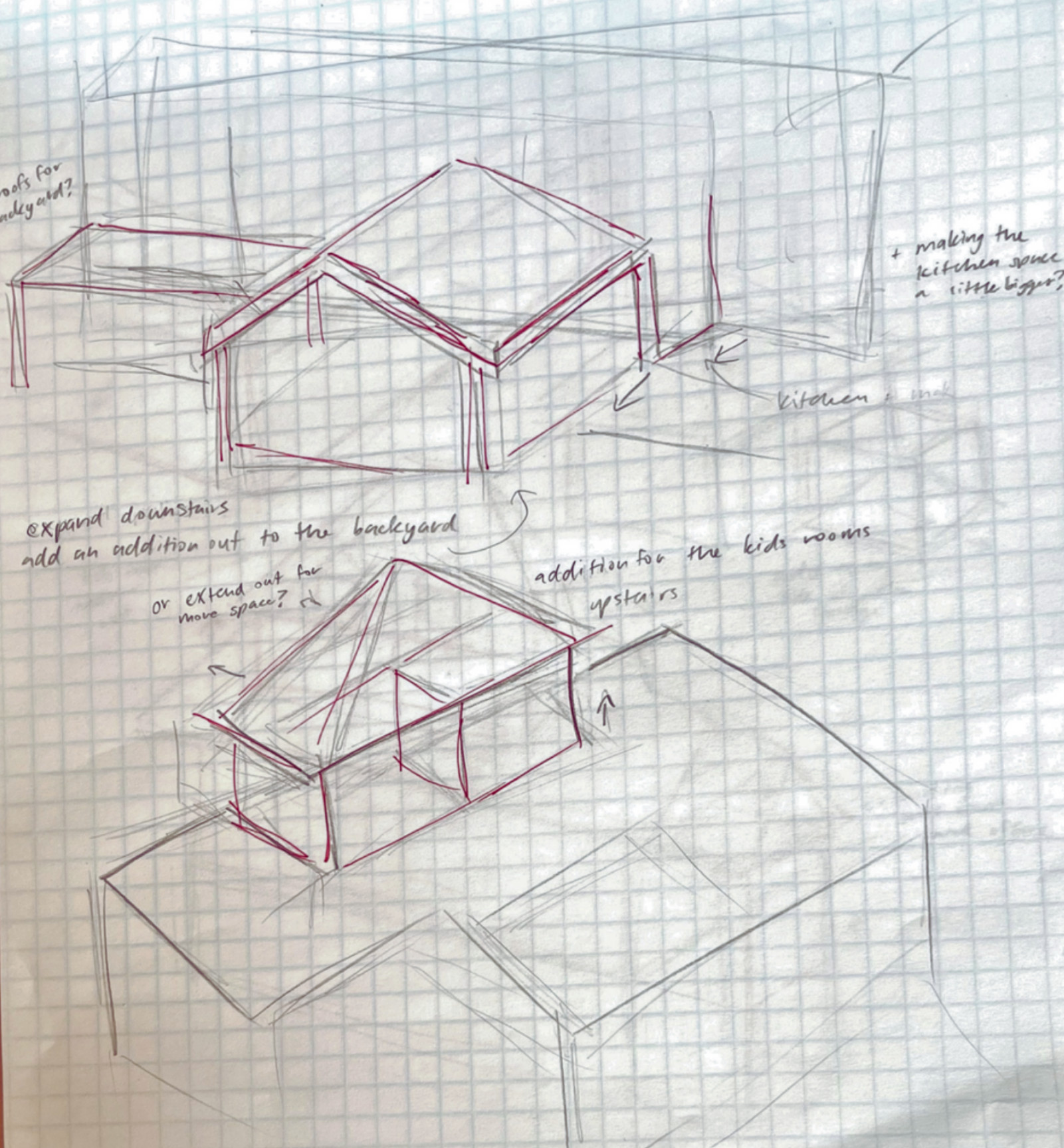 I used my SketchUp model to create “massing models” of the additions (big models with not a lot of detail).