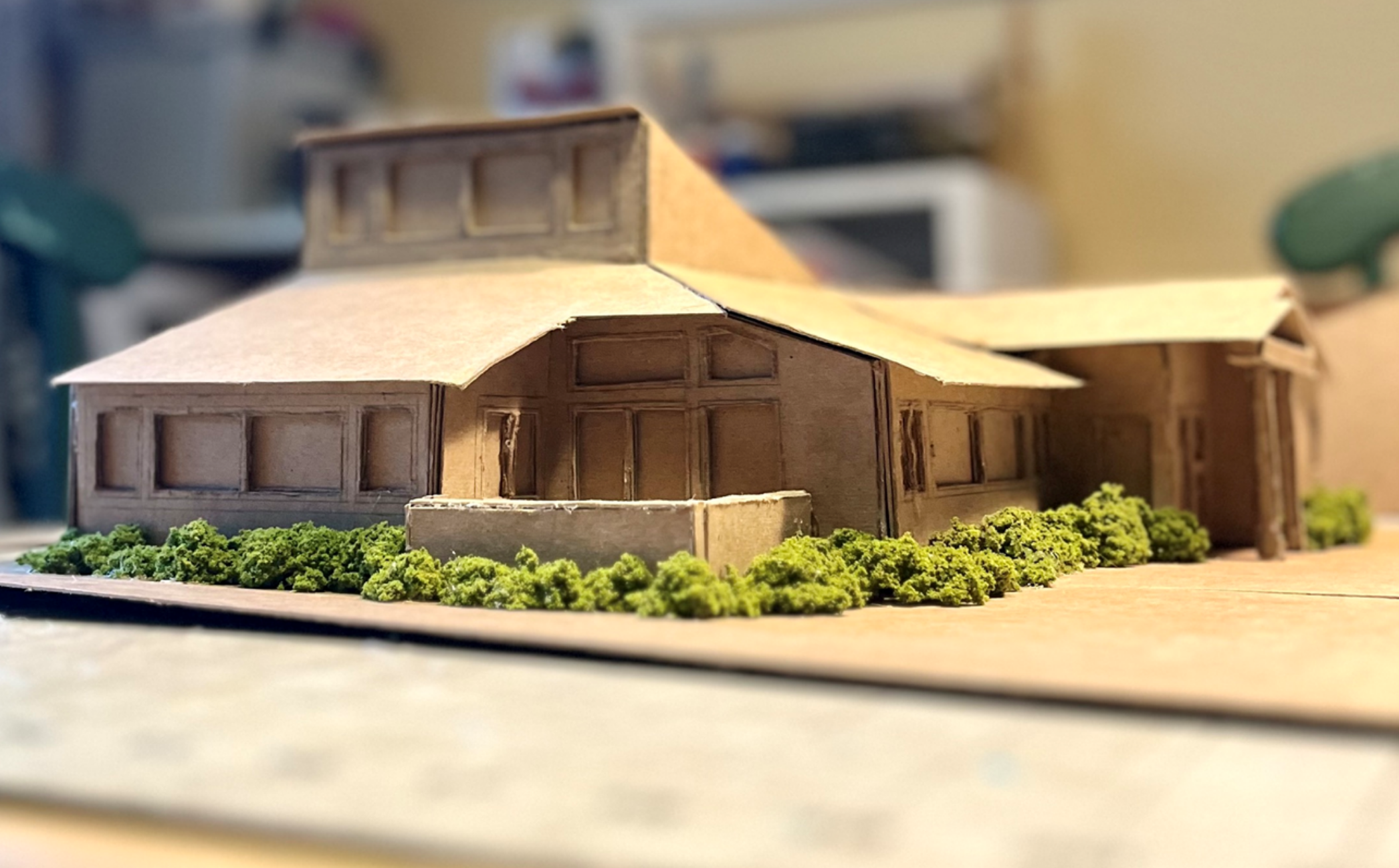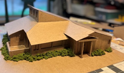 I used the digital model to transform it to a physical model using layers of chipboard. For the end-of-year project showcase, attended by all the students’ families and internship mentors, I presented the physical model, the digital model, and the original plans all side-by-side. Afterward, I created a second, smaller, model for display at the library itself. On my next visit, I presented it to the library staff.