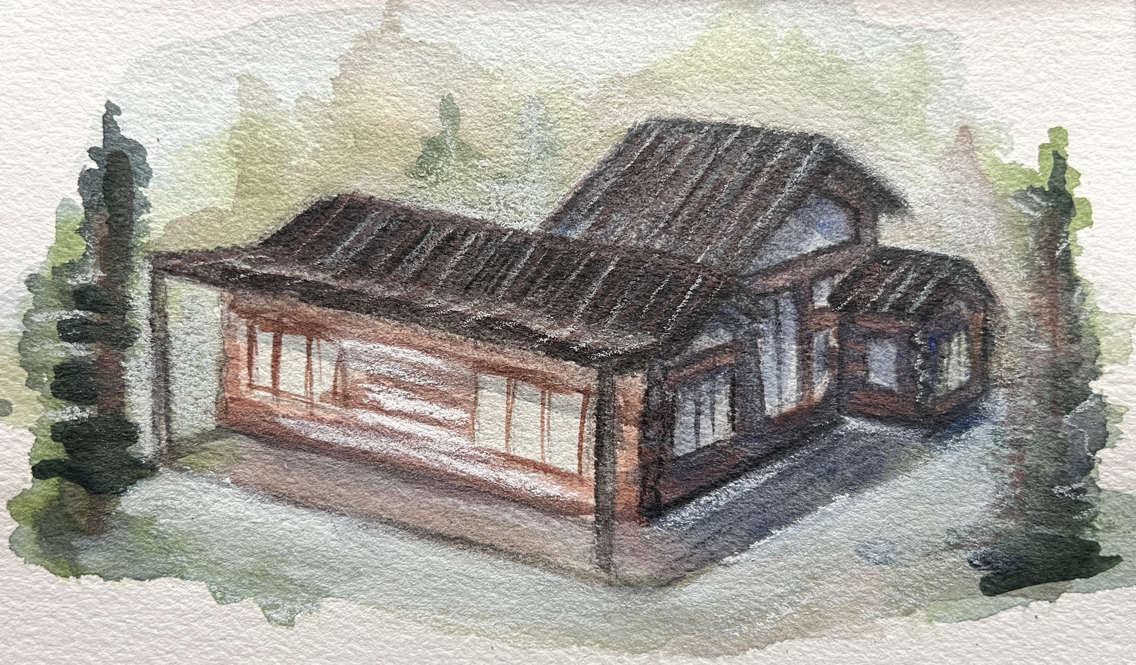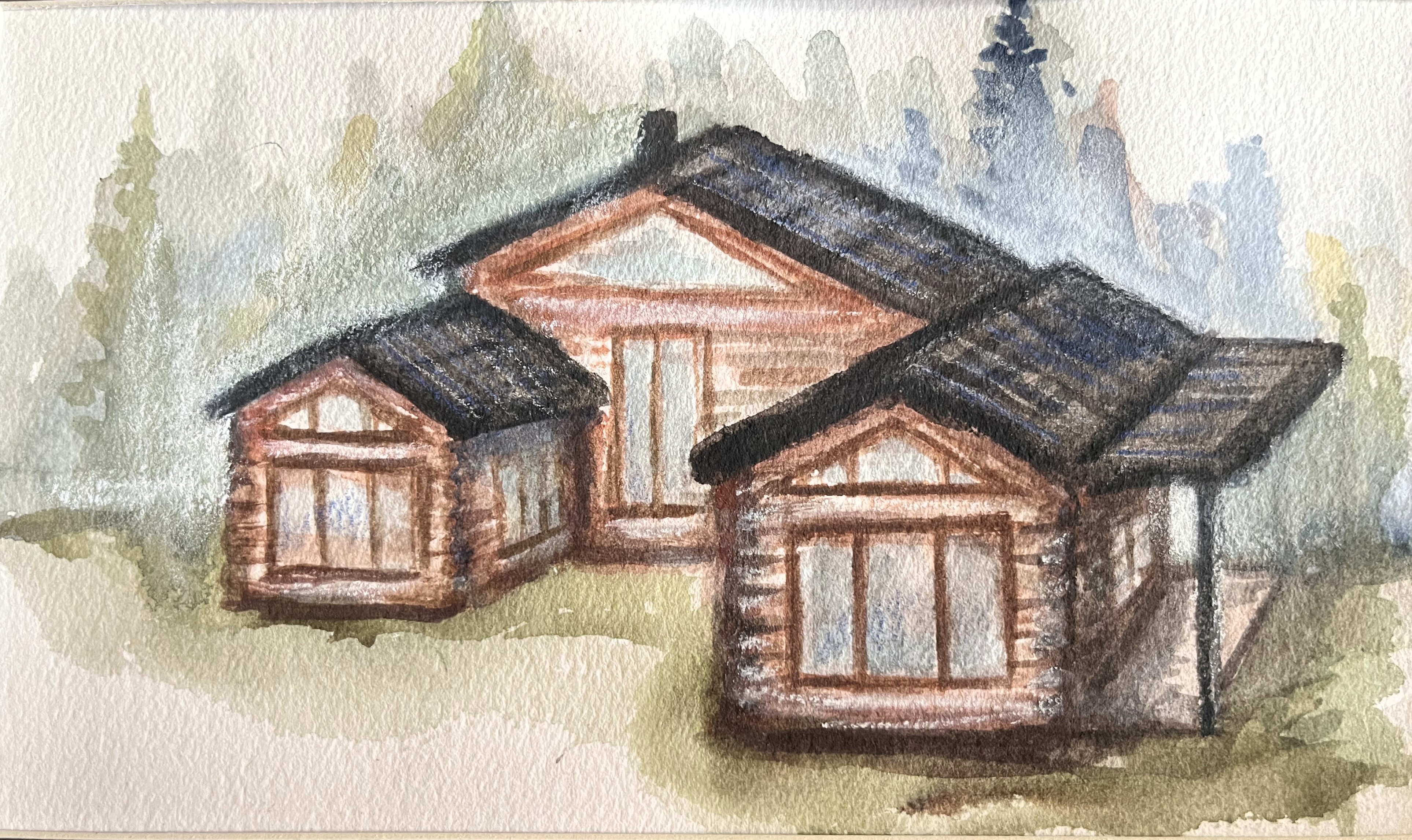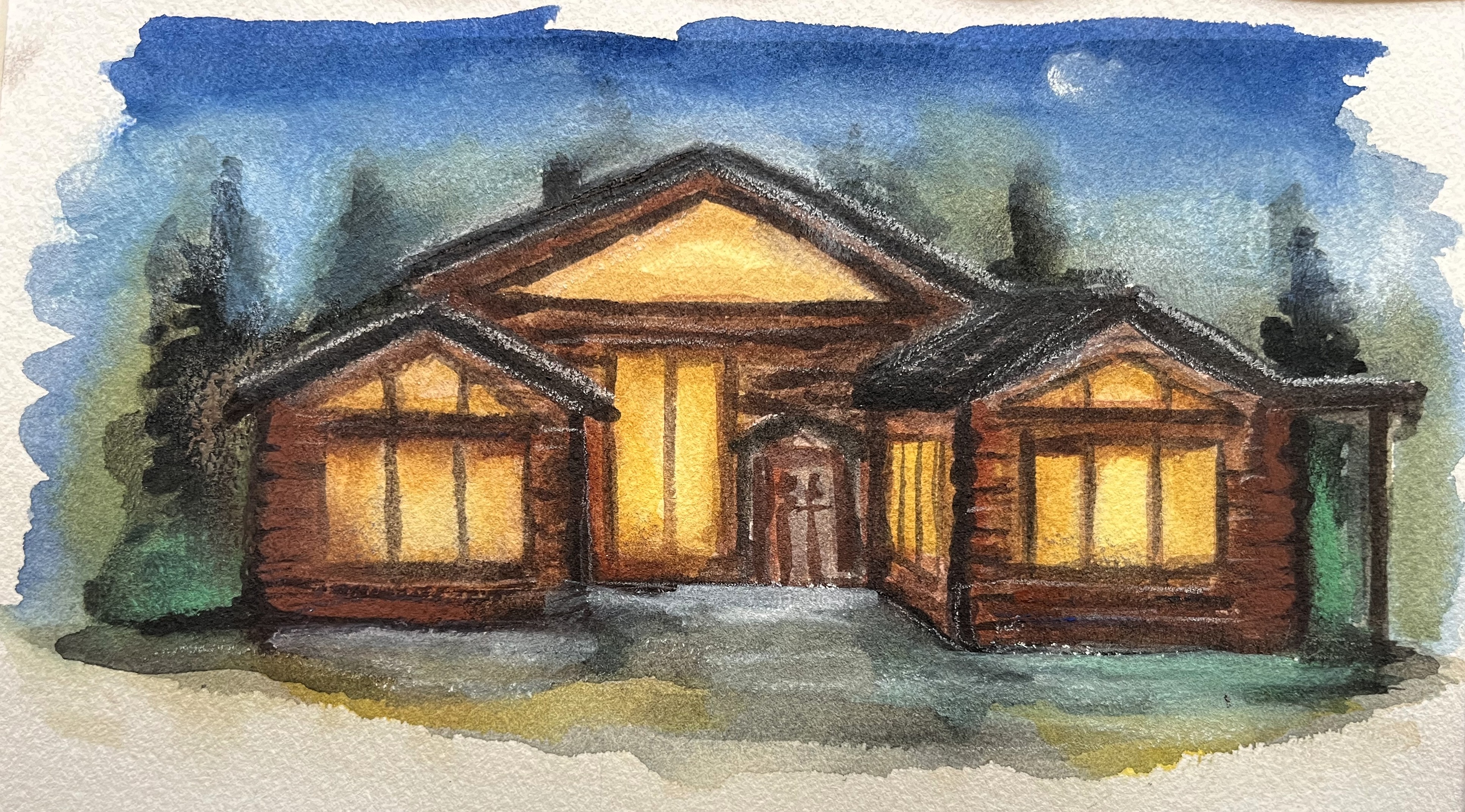 I looked through watercolor references of other cabins and picked my favorite aspects of them, trying to replicate similar styles. My previous watercolor experience led me the skills to excel at these drawings while also having a lot of fun. My favorite is the cabin at night, with the windows lit up. Across the whole project, this is the part I’m most proud of because it showcases my skills as an artist.