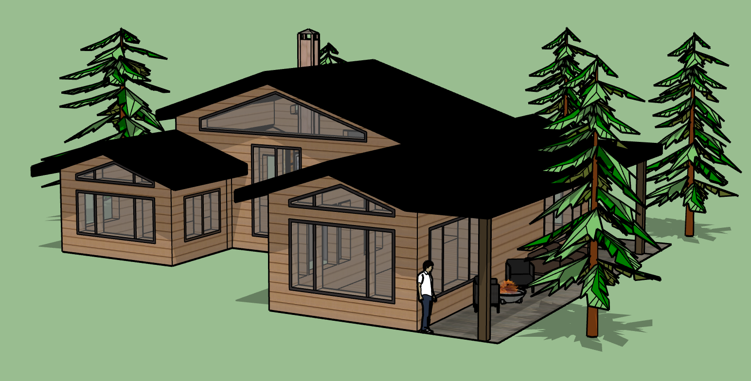 By this time in my architecture journey, transferring my work to SketchUp was an easy task. Seeing my design come to life in 3d was exciting. I like how all the windows let in so much natural light, allowing a stronger connection to the natural environment outside. This digital model also helped me draw elevations and perspectives.