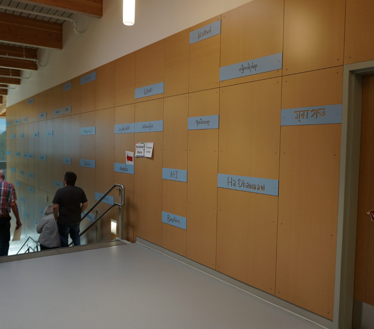 In spring of 2024, I was excited to attend the official opening ceremony at Viewlands Elementary. The installation was huge, spanning a hallway and two flights of stairs. Seeing my work displayed in real life was very rewarding. I am very grateful to Mahlum for providing me this opportunity.